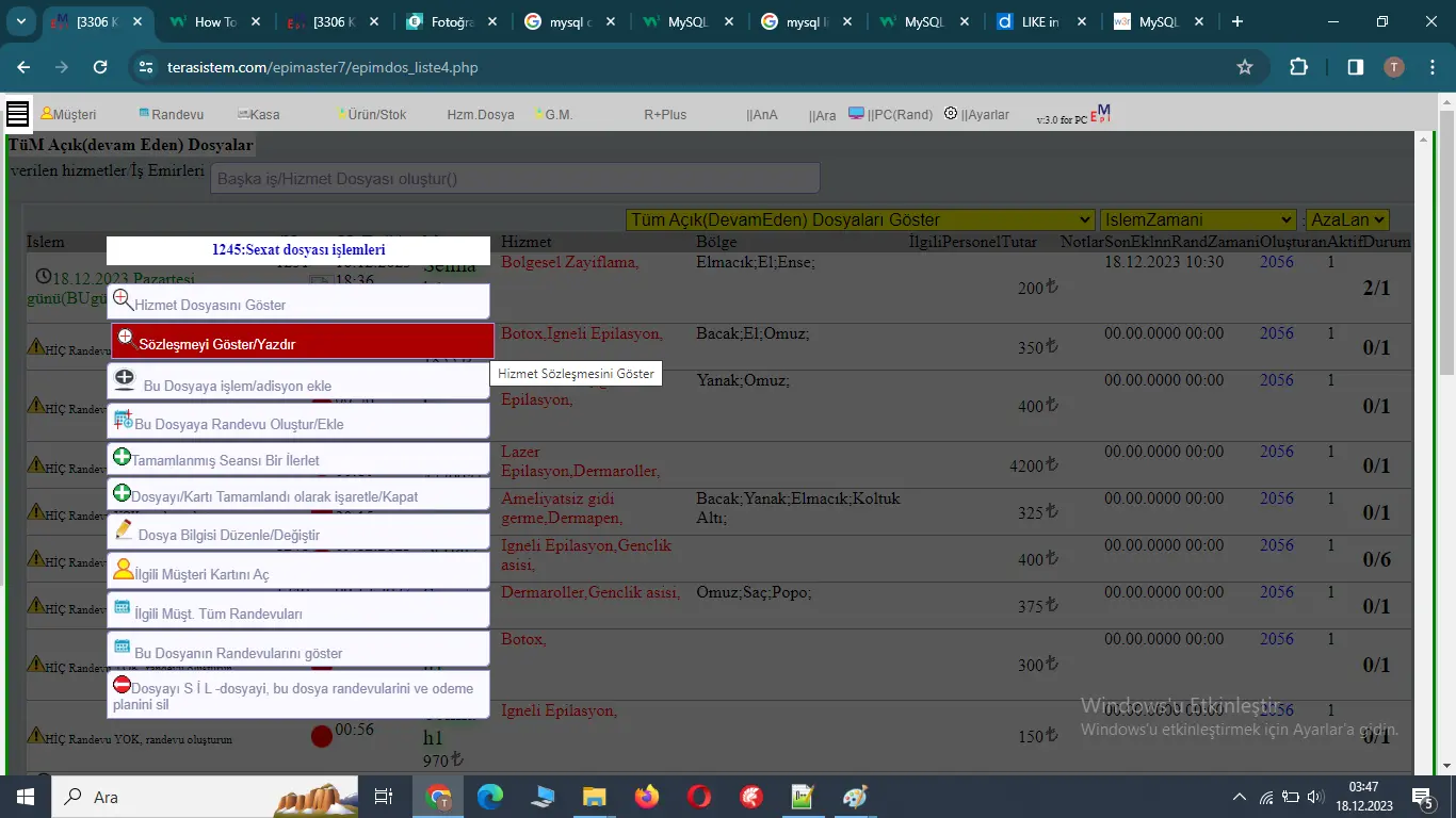 Adisyon/yapilan işlem/bölge Takibi-yonetimi